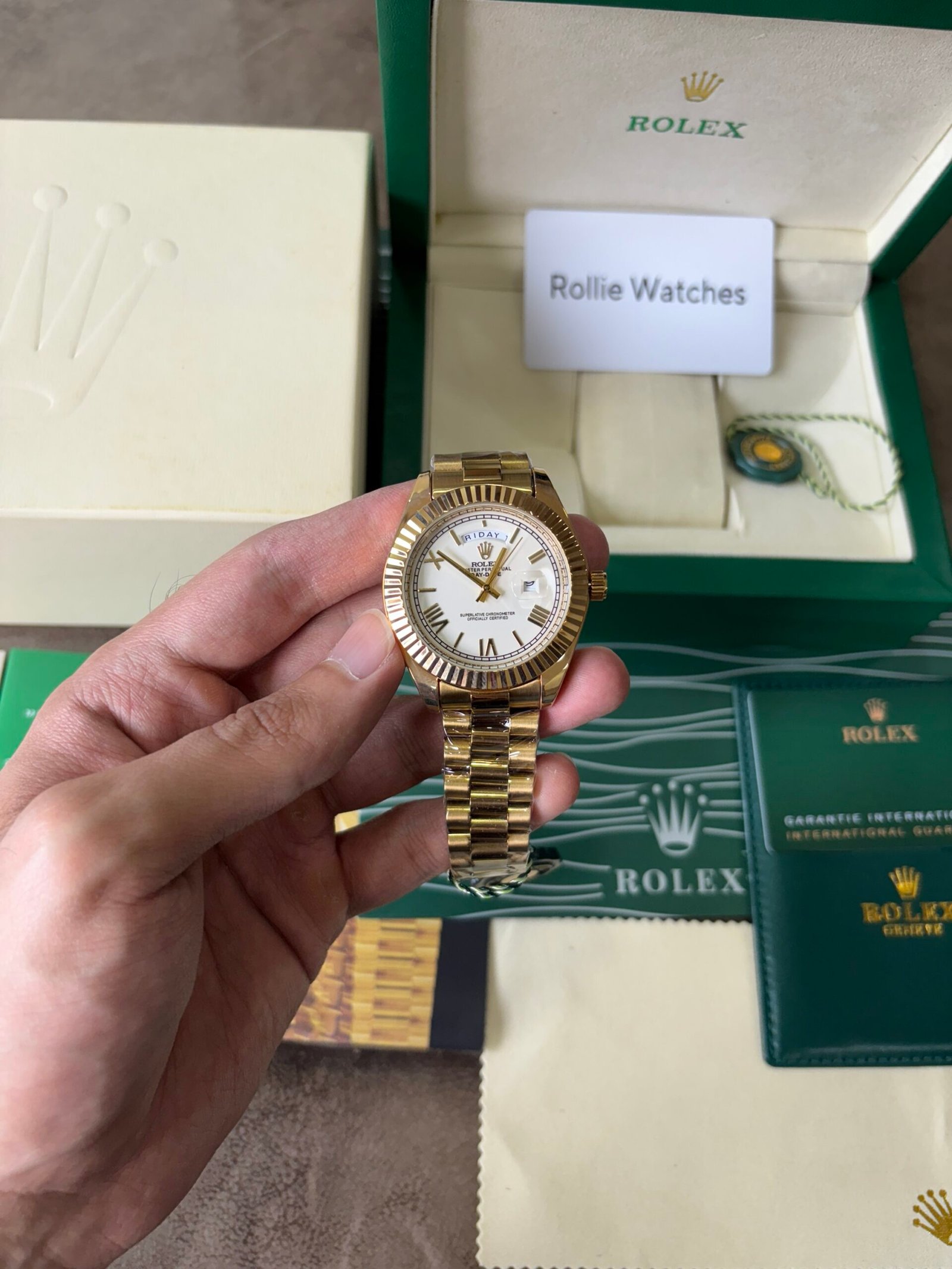 Rolex Oyster Perpectual Day Date Gold white Quartz