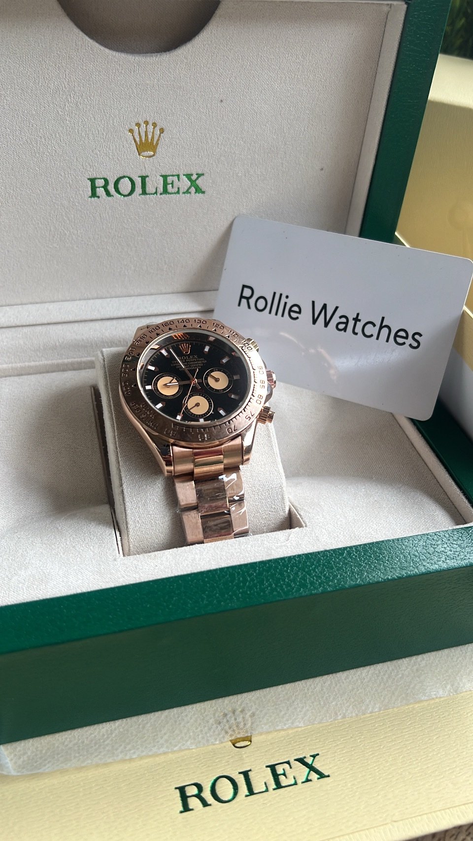 Elevate your style with our Rolex Perpetual Daytona Watch, crafted to mirror the original in every detail same design, weight, and perpetual Daytona movement. Built with premium materials for a luxury feel that lasts.